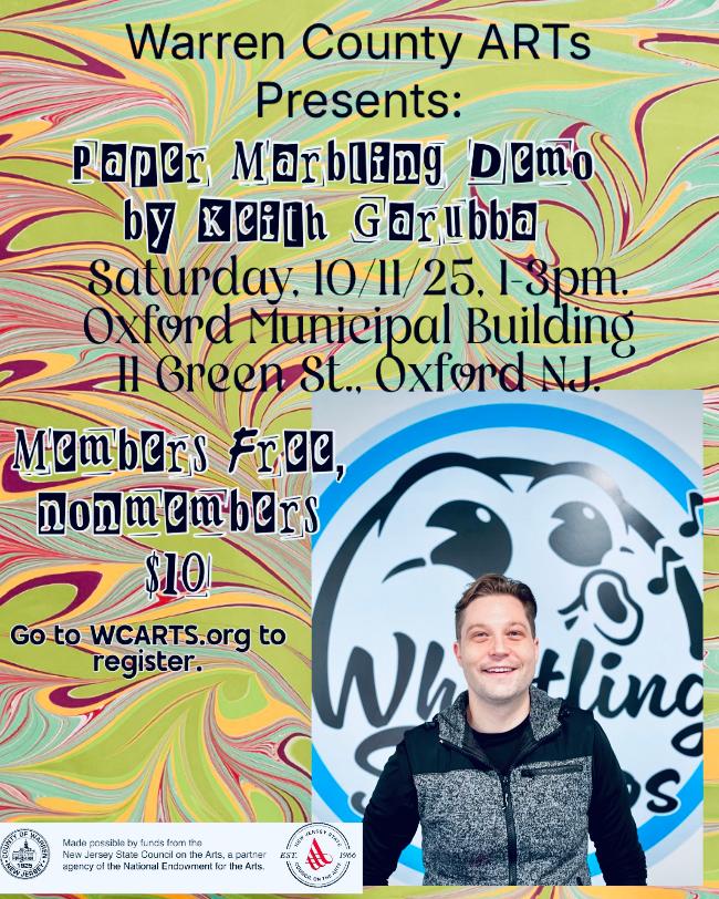 | Saturday, 10/11/2025 1-3pm | Live | Yes | Paper Marbling Artist Talk | Keith Garubba | Member -Free, Non-member $10 |