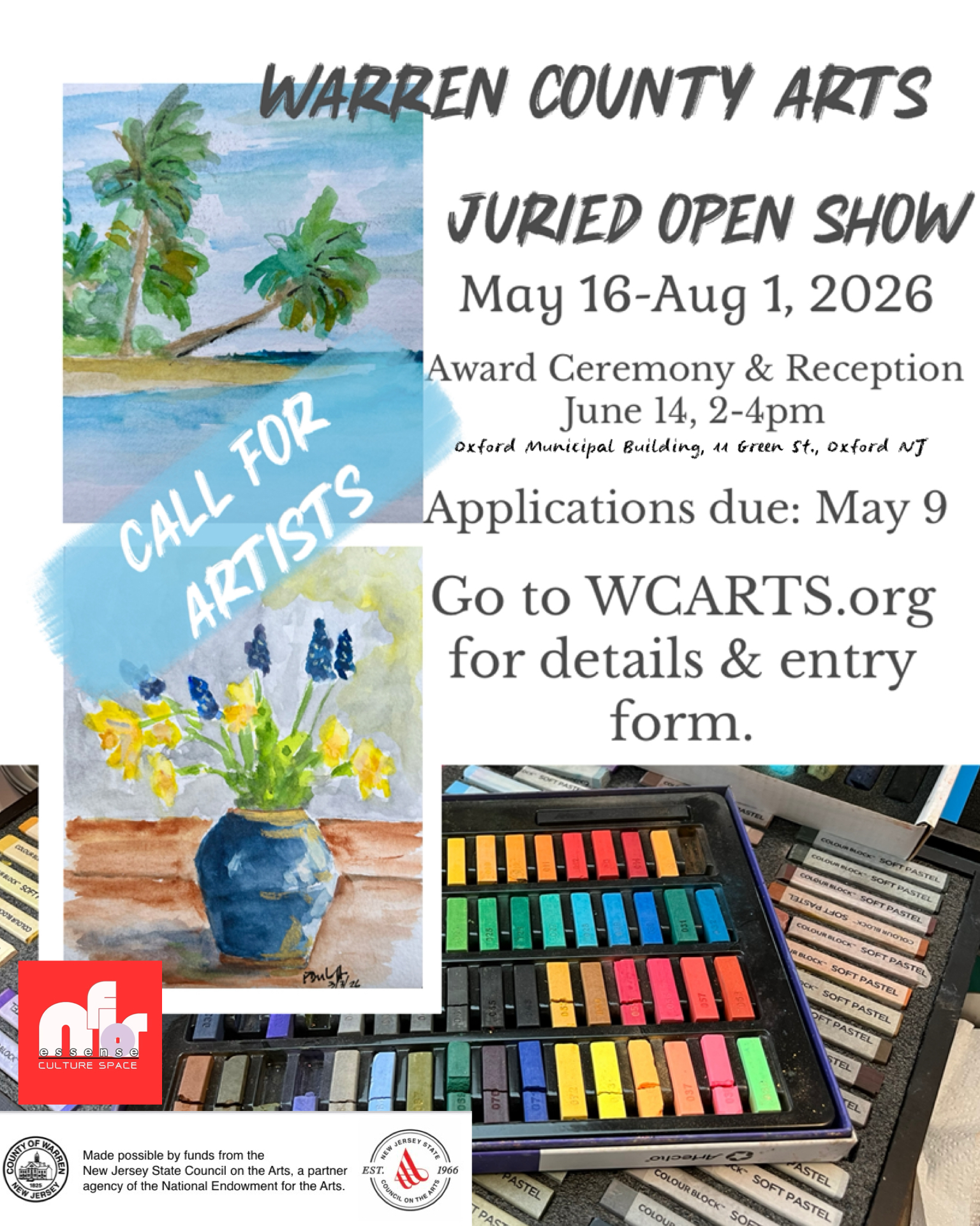Infloressence Culture Space Gallery in Belvidere has donated 1 month of gallery exhibit for the First place, Best in Show & People Choice winners from 8/4/26 - 9/5/26 with Artist Reception on Sunday, 8/9/26, 2-4pm at 241 Water St., Belvidere, NJ.